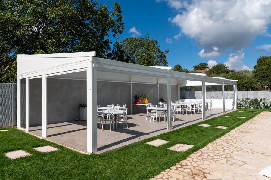 Offriamo un'ampia scelta di strutture modulari in alluminio, autoportanti e adiacenti, con coperture fisse o mobili motorizzate. I modelli possono essere dotati di chiusure laterali per creare una nuova situazione di living.